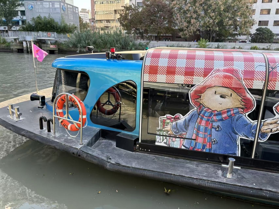 游船在四行仓库码头首航,其位于的苏州河静安段是苏州河文化遗产最丰富、最具有文化代表性的河段,航线先后途经四行仓库抗战纪念馆、慎余里、天后宫、上海总商会旧址等苏河湾区域地标。航班后续会在苏州河全航线运营。市民游客即日起可通过“悠游苏州河”微信小程序,在首页“热门航班”中选择“帕丁顿熊主题游船”。